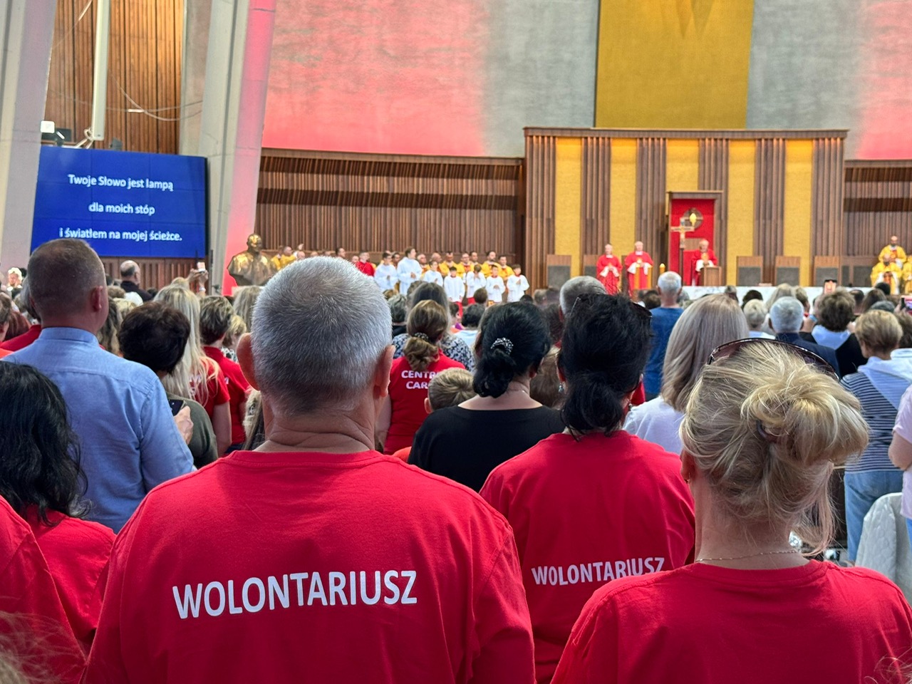Wszyscy pielgrzymi wraz z ich duszpasterzami zgromadzili się o godz. 12.00 na wspólnej Eucharystii sprawowanej pod przewodnictwem ks. kard. Kazimierza Nycza. W wygłoszonej homilii, ks. bp Wiesław Szlachetka podkreślał wartość przyjaźni ubogacającej, która na wzór relacji Jezusa Chrystusa z człowiekiem, łączy mądrego z mniej umiejętnym, silnego ze słabszym, bogatego z będącym w potrzebie. „Drodzy wolontariusze, wy właśnie taką przyjaźń, jaką ukazuje nam Jezus Chrystus, uczyniliście swoją drogą życia. To jest najpiękniejszy owoc, jaki można osiągnąć.”